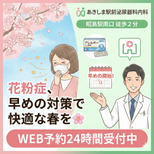 - 2月 7, 2026内科【医師解説】緑茶で花粉症は予防できる?効果的な飲み方と医療機関での正しい対策|あきしま駅前泌尿器科内科